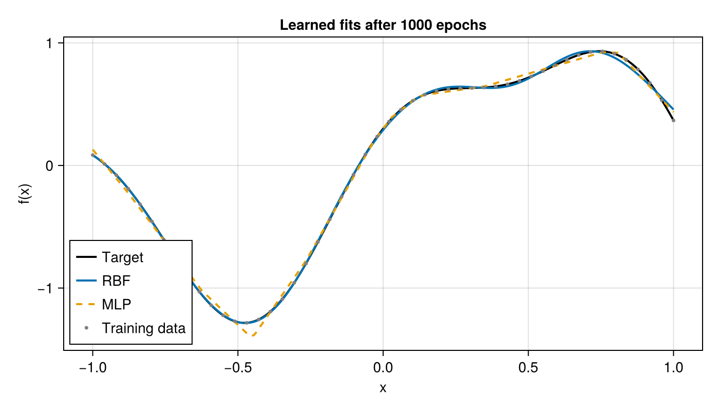 println("MLP final MSE: ", round(losses_mlp[end]; sigdigits=3))RBF final MSE: 0.000338